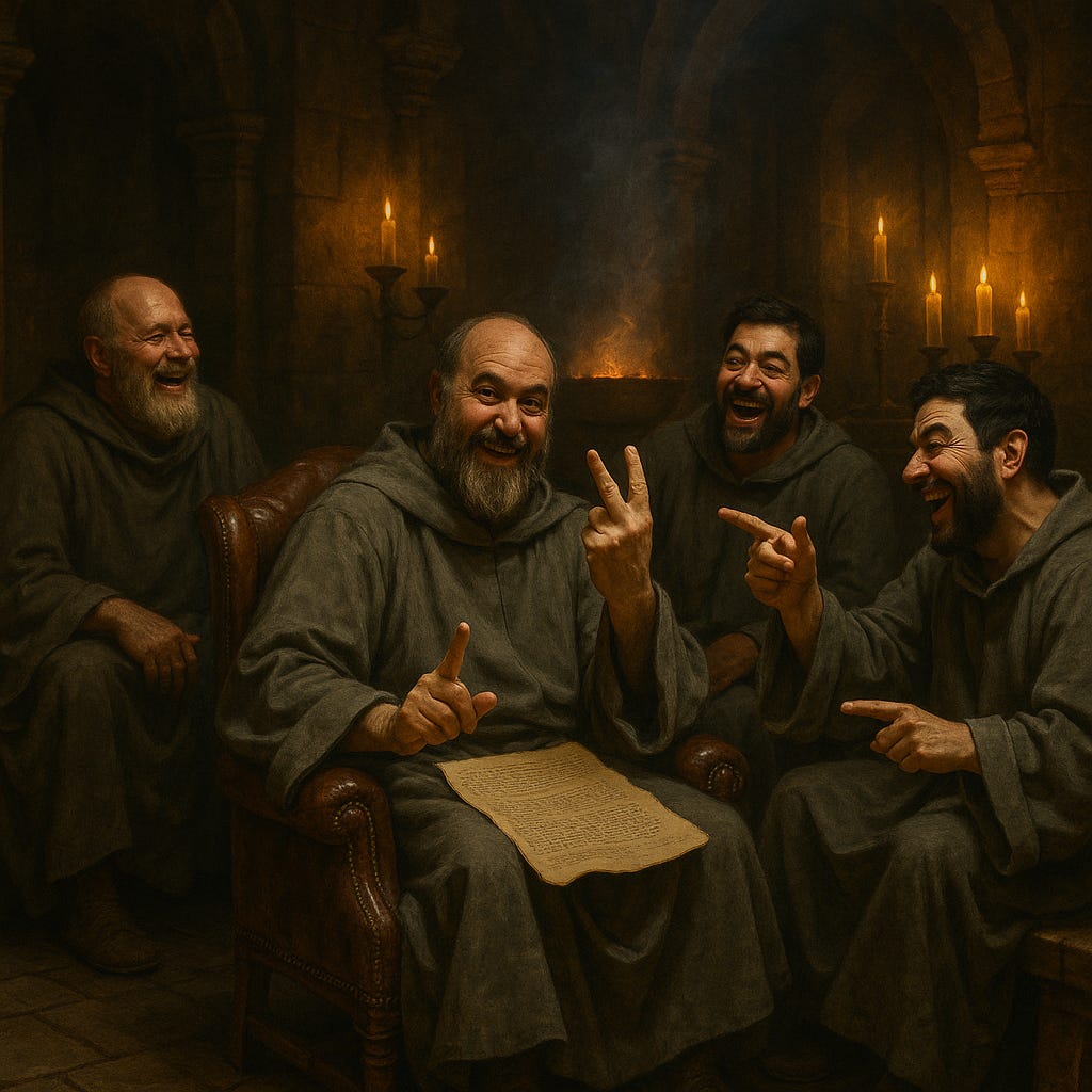 Collective Shadow Exploration. Perhaps most importantly, casual irreverence enables shadow exploration among friends and siblings of our order, allowing safe expression of normally suppressed thoughts, aggression, or taboo observations. It provides a socially acceptable outlet for darker impulses that might otherwise remain unacknowledged, which creates measured psychological release alongside social connection.